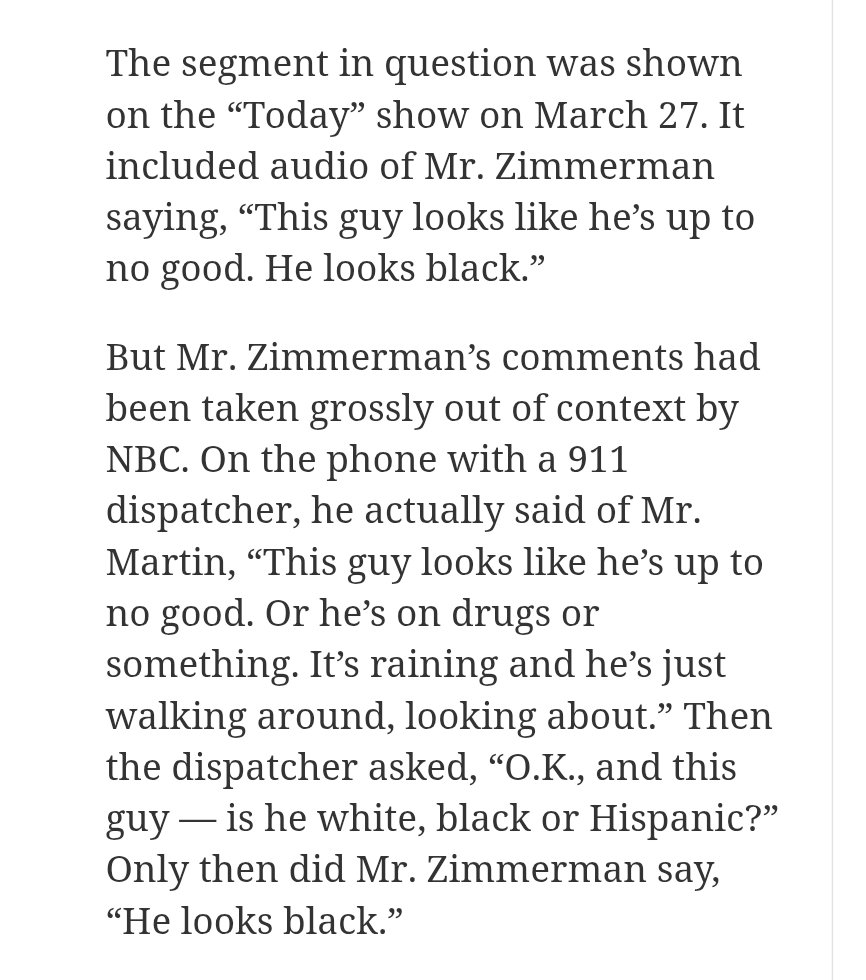 In 2022, the NYT and Pres. Obama released a 10 year retrospective on the Trayvon Martin case. Astoundingly, they used deceptively edited audio of Zimmerman's 911 call to imply he deemed Trayvon to be suspicious *because* he was black. Listen side by side for the difference. 🧵