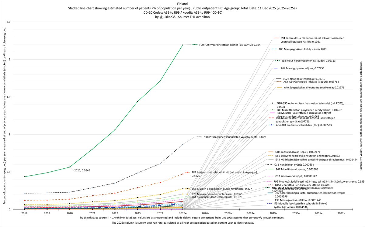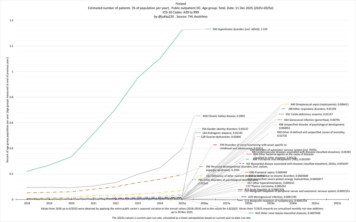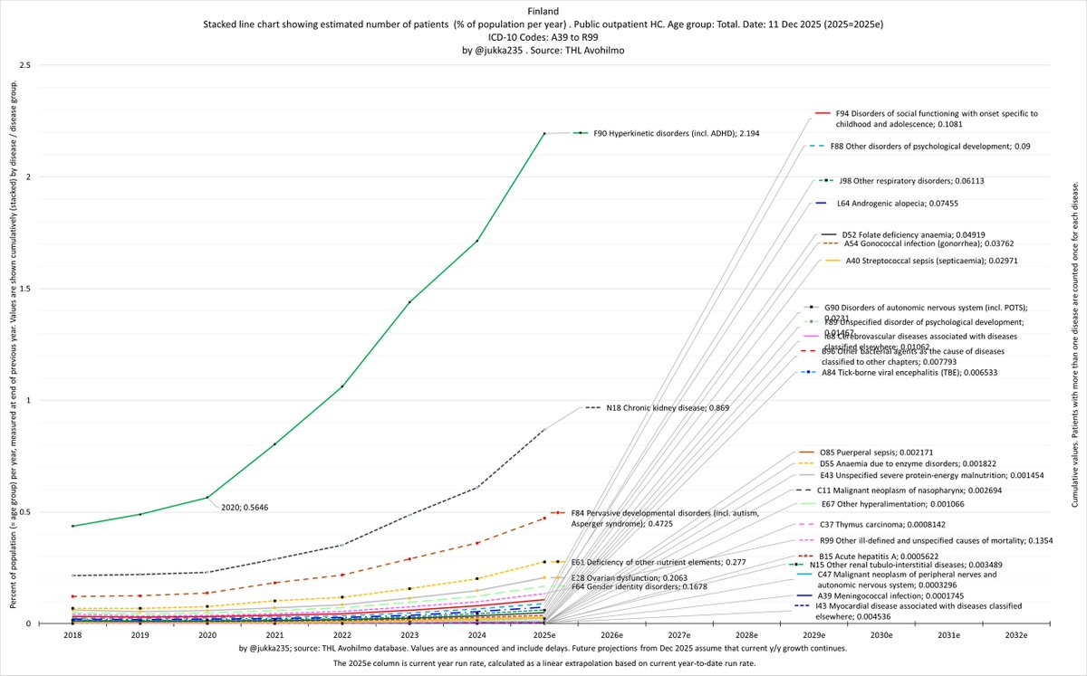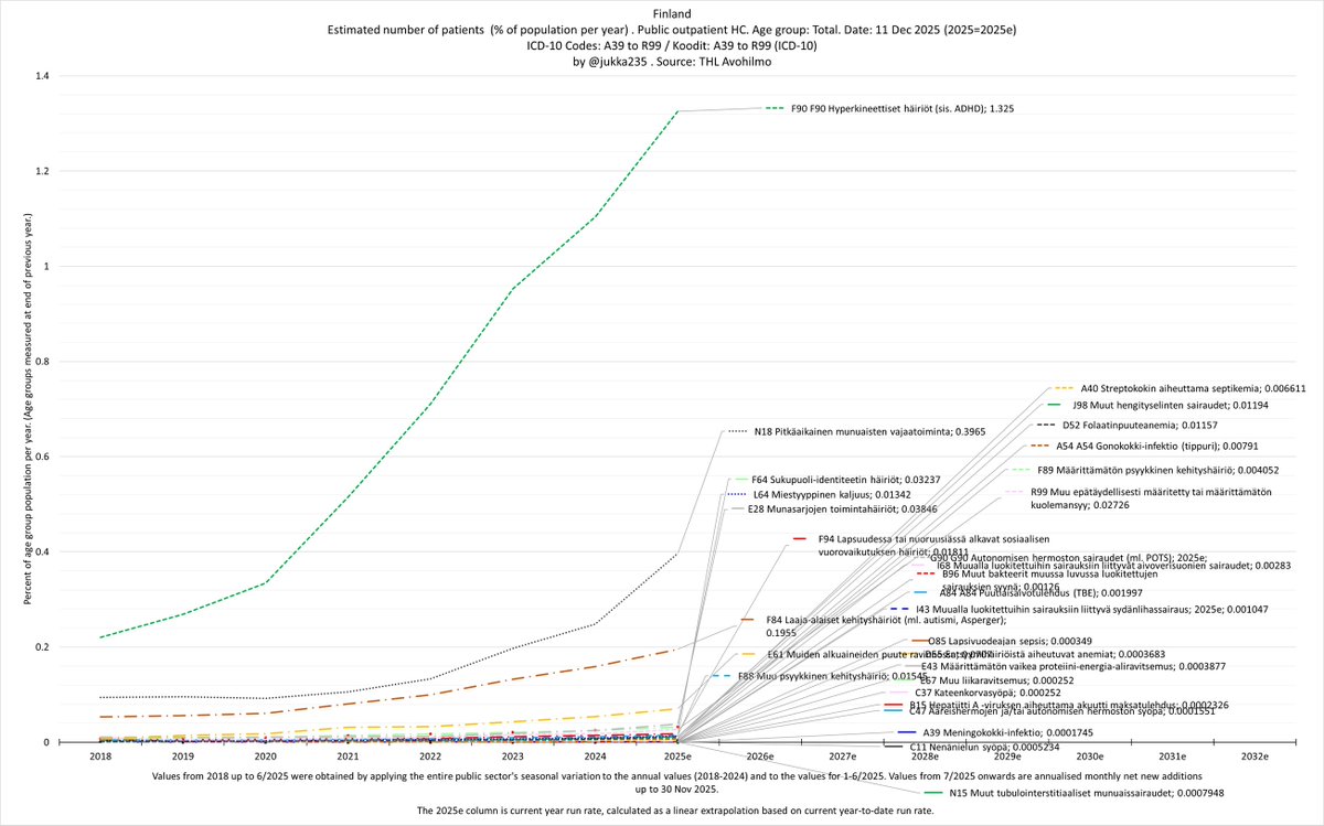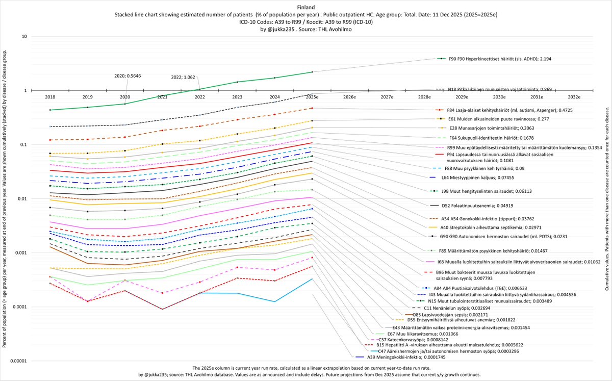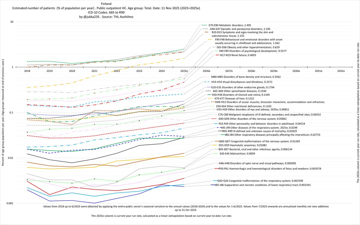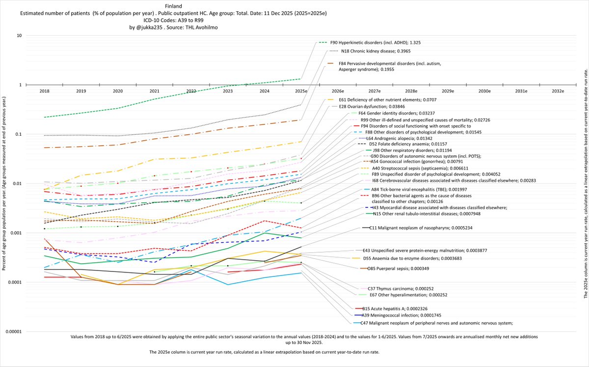 In fact, we’re seeing exponential growth in patient numbers across all disease and age groups in Finland. The trend is strikingly linear on a log scale, with no sign of any slowdown since 2020.