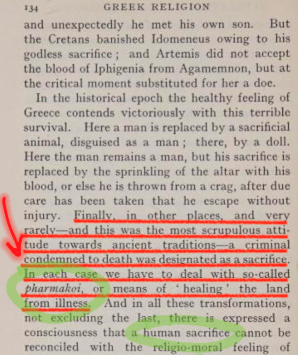 But it doesnt just stop there, "Pharmakoi" were HUMAN sacrifices that were popular with the Hellenist occultists (if you didnt catch that from the earlier collage).