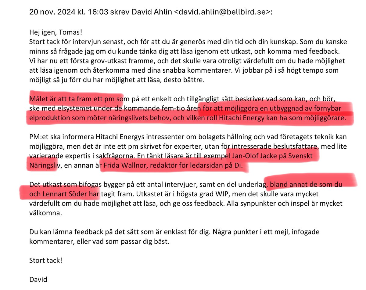 Årets julklapp från mig är en epistelläsning. I den anlitar företaget @hitachienergy konsultbyrån Bellbird för att sprida desinformation om Sveriges elsystem. Bellbird får i sin tur hjälp av Lennart Söder och Tomas Kåberger med uppgiften. Häng med på 🧵: