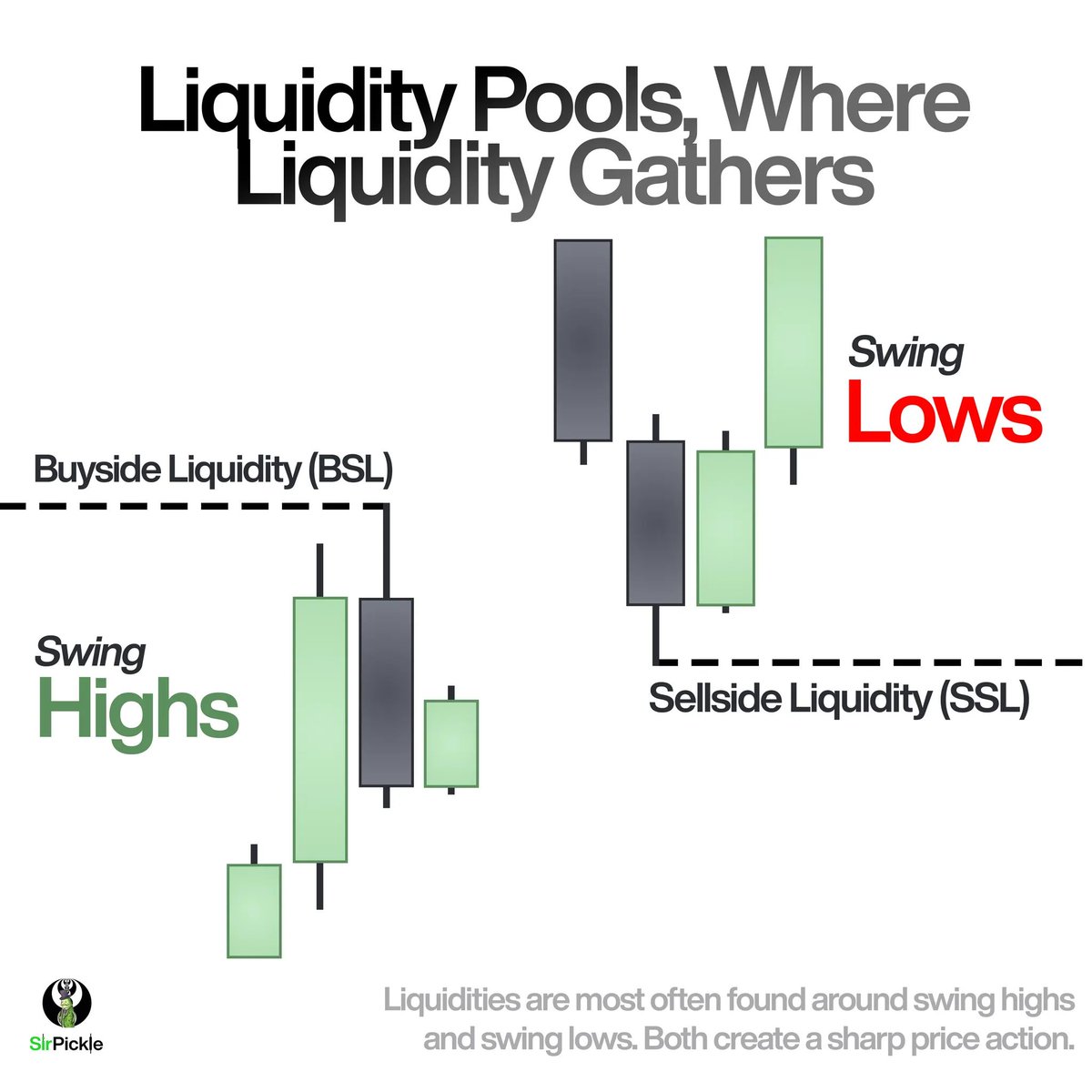 While liquidity is everywhere, it forms “pools” in specific areas. These liquidity pools are were a LARGE number of buy and sell orders are clustered.