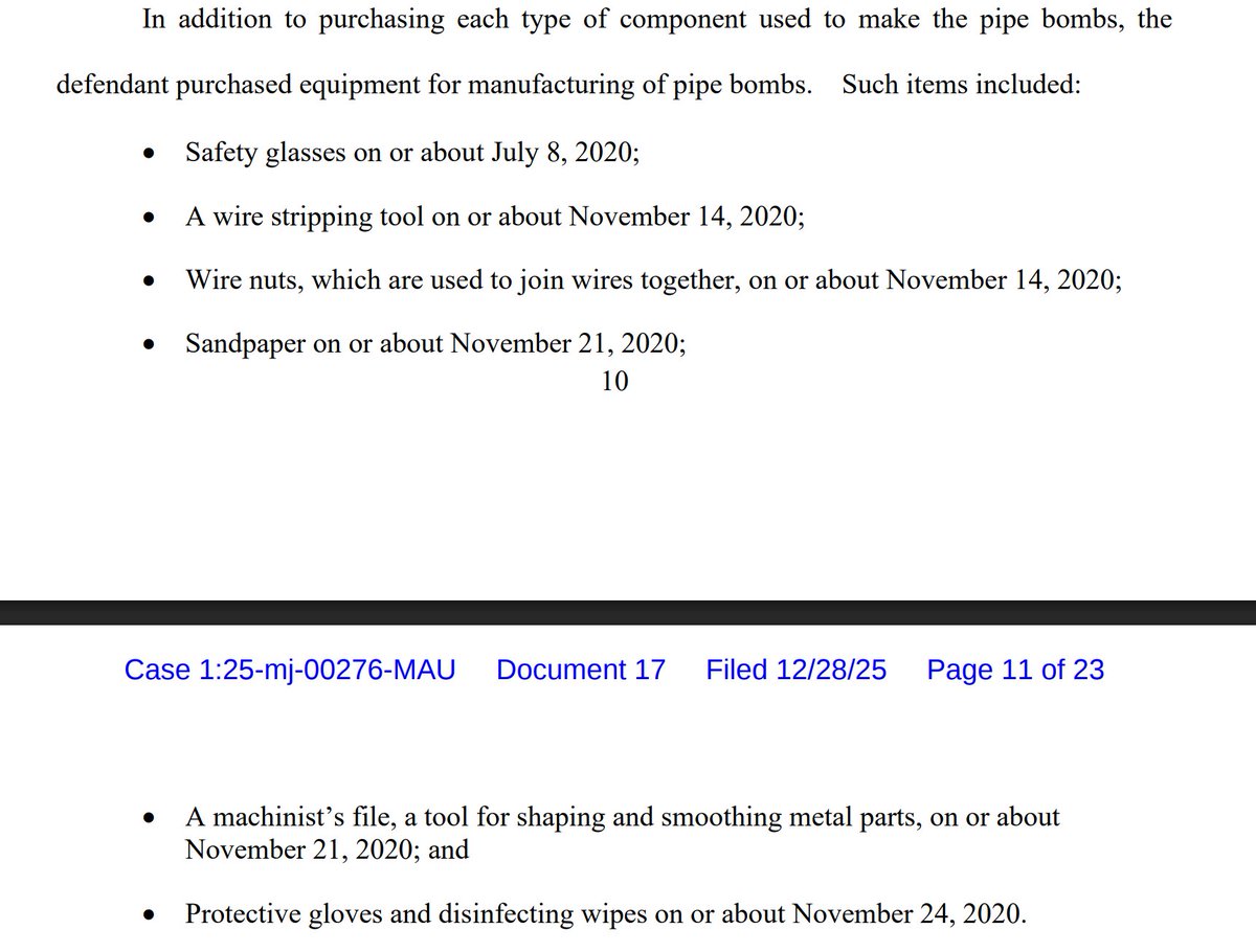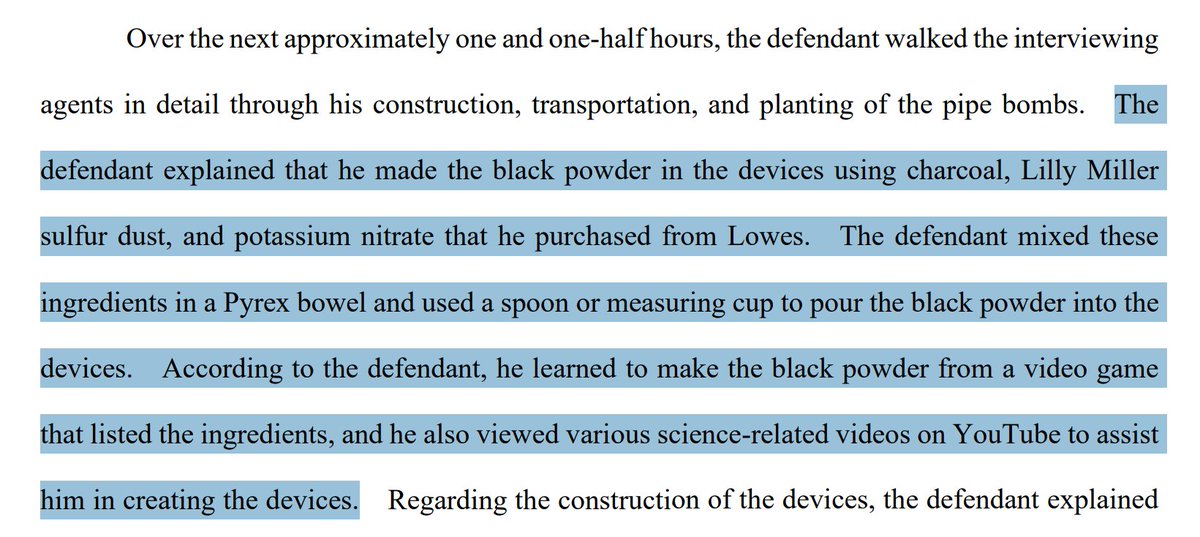"he admitted that sometime after he built the pipe bombs used in this case, he purchased beaker sets and conducted another science experiment to create potassium chlorate, which he claimed was unrelated to bombmaking." 🤨