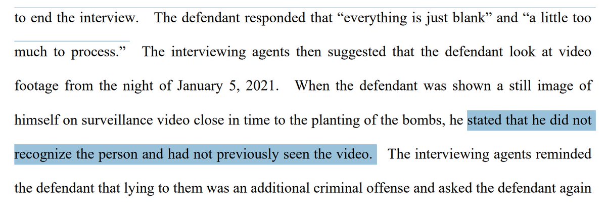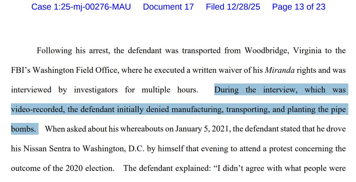 "During the interview, which was video-recorded, the defendant initially denied manufacturing, transporting, and planting the pipe bombs."