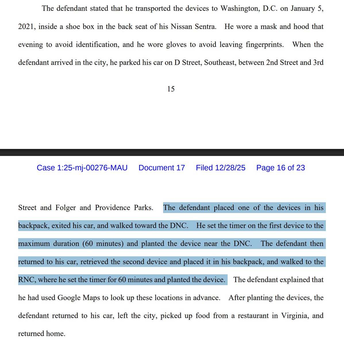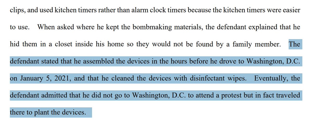"The defendant stated that he assembled the devices in the hours before he drove to Washington, D.C. on January 5, 2021...
