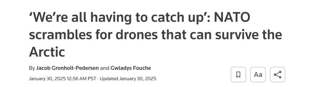 "Sending drones and robots into battle, rather than humans, has become a tenet of modern warfare. Nowhere does that make more sense than in the frozen expanses of the Arctic." wsj.com/world/where-dr…