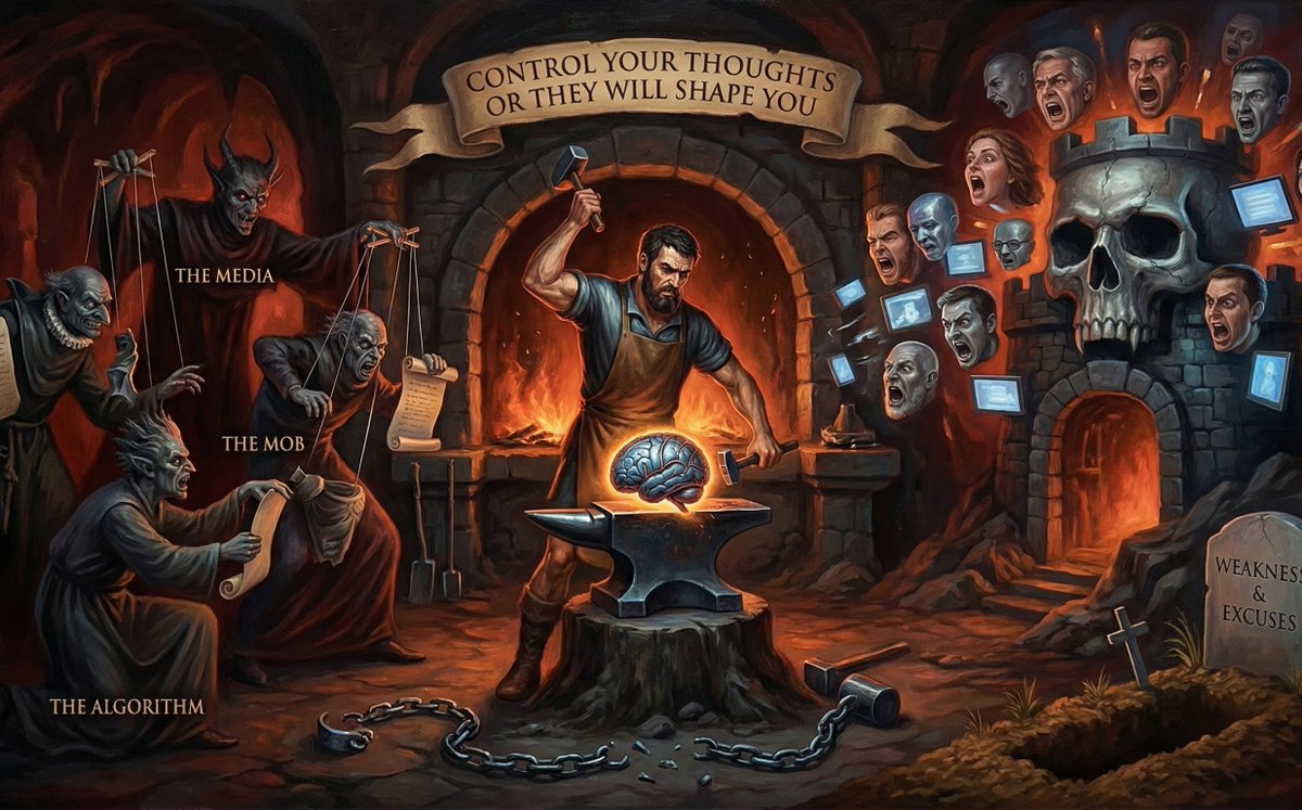 If you do not control your thoughts, someone else will shape them for you. The media, the mob, the algorithm. If you do not command your reactions, you become a puppet to those who provoke you. The battlefield of life is not on streets or stages or in the hollow chambers of government. It is in the silent space behind your eyes. Power begins there or it dies there. Most people never understand this because they have been conditioned to believe control is external. They seek influence, money, authority. But those are effects, not causes. Without inner command, outer dominance dissolves. Many men have held empires and lost their minds. Many have risen by fortune only to fall to fear. Few master themselves and few still keep that mastery when the world tests them. But you are here because something inside you already refuses to be weak. You refuse to bend. You refuse to drown in a world addicted to softness and validation. You are here because a voice inside knows comfort is the enemy of greatness. Peace without discipline is a trap and emotional obedience is slavery. This journey demands a price that the weak are unwilling to pay. It demands the end of your excuses and the burial of your weakness. The death of the emotional self that reacts without thinking must happen now. The version of you that needs approval must fall. The part of you that fears judgment must dissolve. What will rise in its place is a presence that speaks without sound. A mind unshakable and a soul untouchable. Do not expect warmth. Strength is forged in friction. Steel is born in fire. And the mind becomes dangerous only when it learns to stand alone.