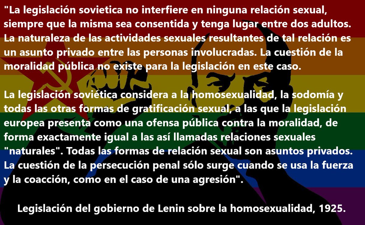 En materia social, la URSS fue el primer estado del mundo en despenalizar la homosexualidad en 1917, esta cita da cuenta de la avanzada legislación soviética de 1925, sobre la homosexualidad: