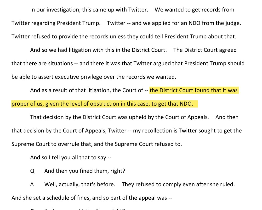 She set an unreasonable deadline to produce the file and as Twitter sought relief from DC appellate court--Howell, the Trump-hating Obama appointee, was upheld by 1 Obama and 2 Biden appointees--then fined Twitter $350,000 for an alleged 55 hour "delay" in producing the data to Smith. She also suggested Musk was trying to "get in good" with Trump by fighting the NDO.