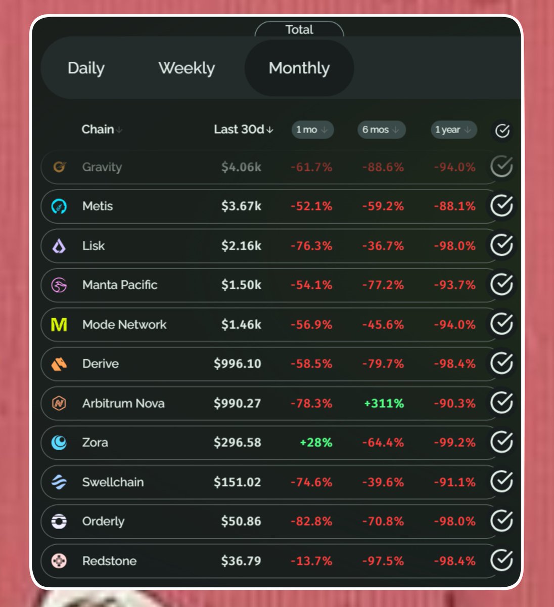 -> ~$800k in ETH burned by L2s that didn't have the infra in place to switch to regular blockspace