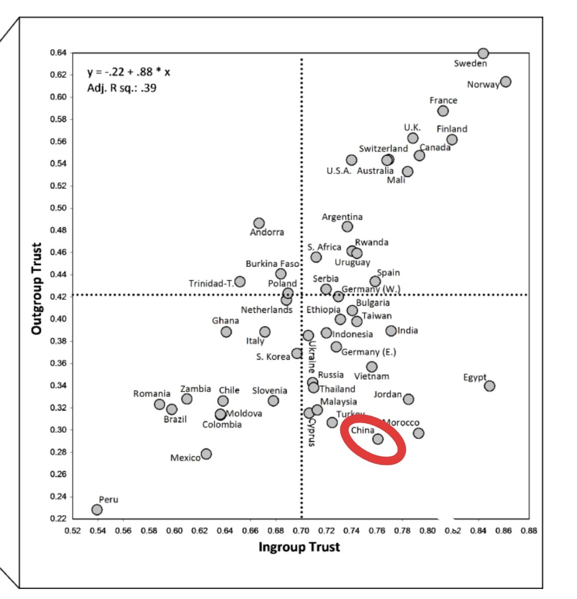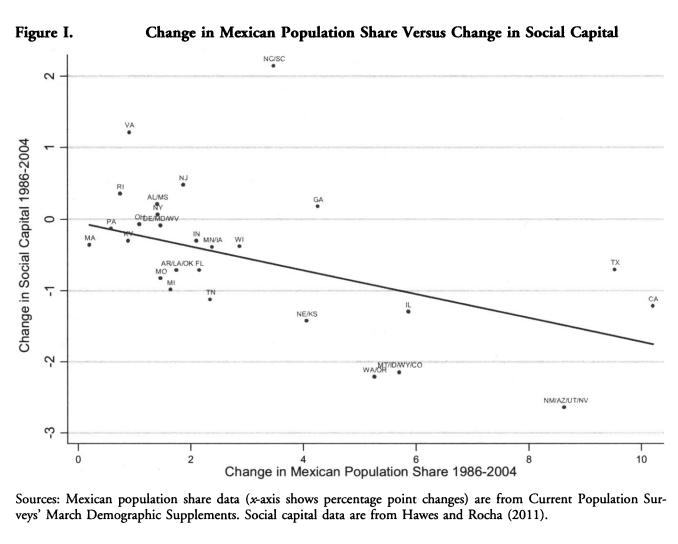 As such, it's not shocking Mexicans tend to distrust everyone (including other Mexicans) and areas in the US they move to tend to become less trustworthy. Image
