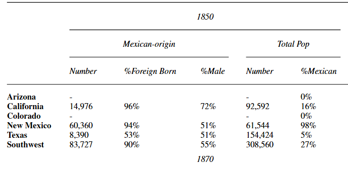 Like many groups, Mexicans have a self-serving mythology of US history in which half their country was stolen by gringos but built and populated by Mexicans after 1848. Reality is the Mexican cession was almost empty and ~all Mexican-Americans descend from post-1900 migrants. Image