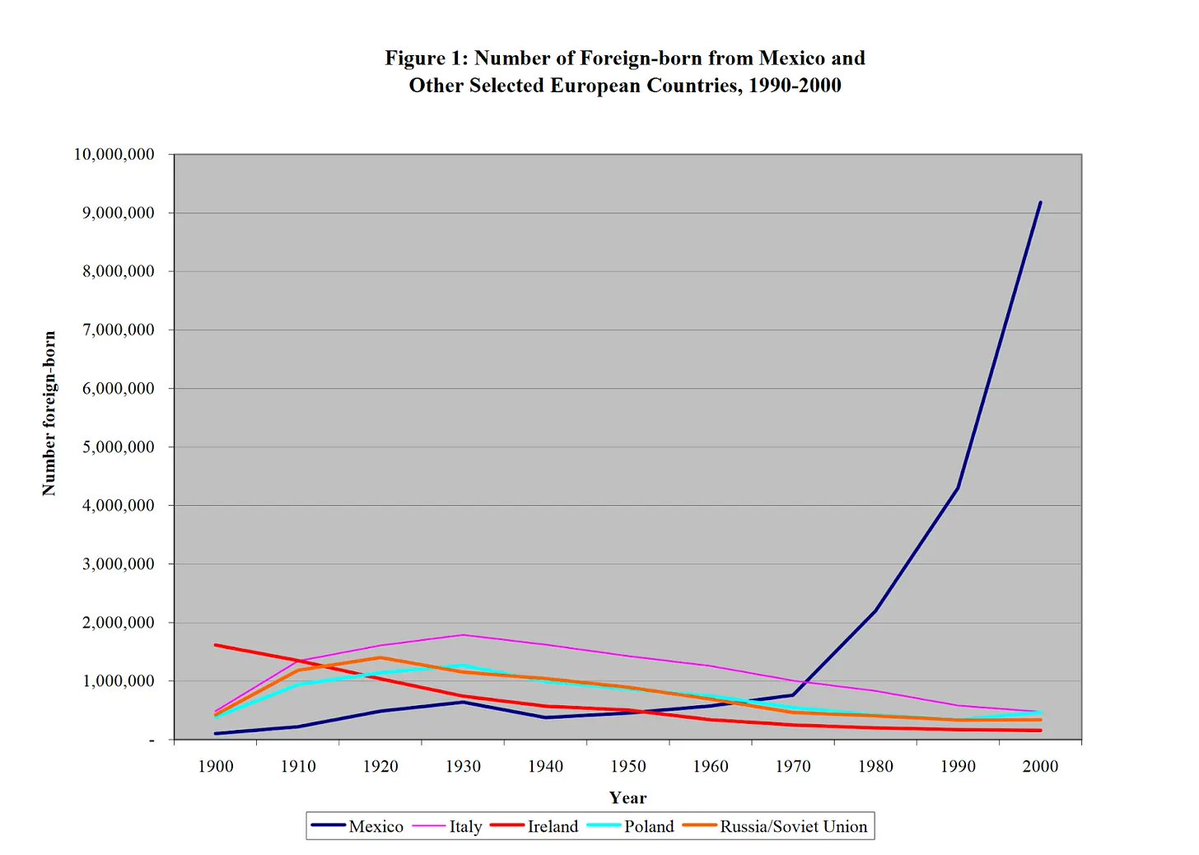 In my view, the negative impacts of Mexican immigration have been muted by the fact that Mexicans often stick to Spanish-language enclaves and are not very involved in national politics or culture. But this will change in generations born here.