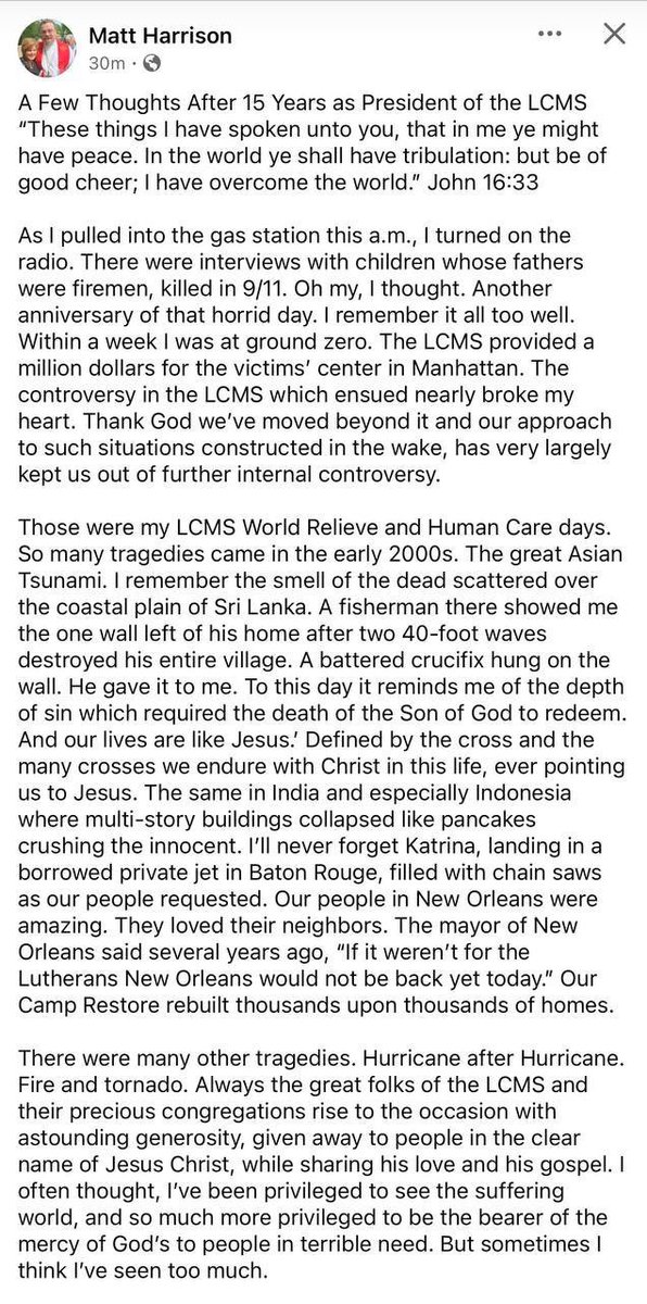 The next day, Ad Crucem published a remarkable insight on the LCMS's lengthy and secret "process" for handling manifest and impenitently sinful pastors, noting that laymen, by contrast, could be publicly run out of congregations in mere weeks.