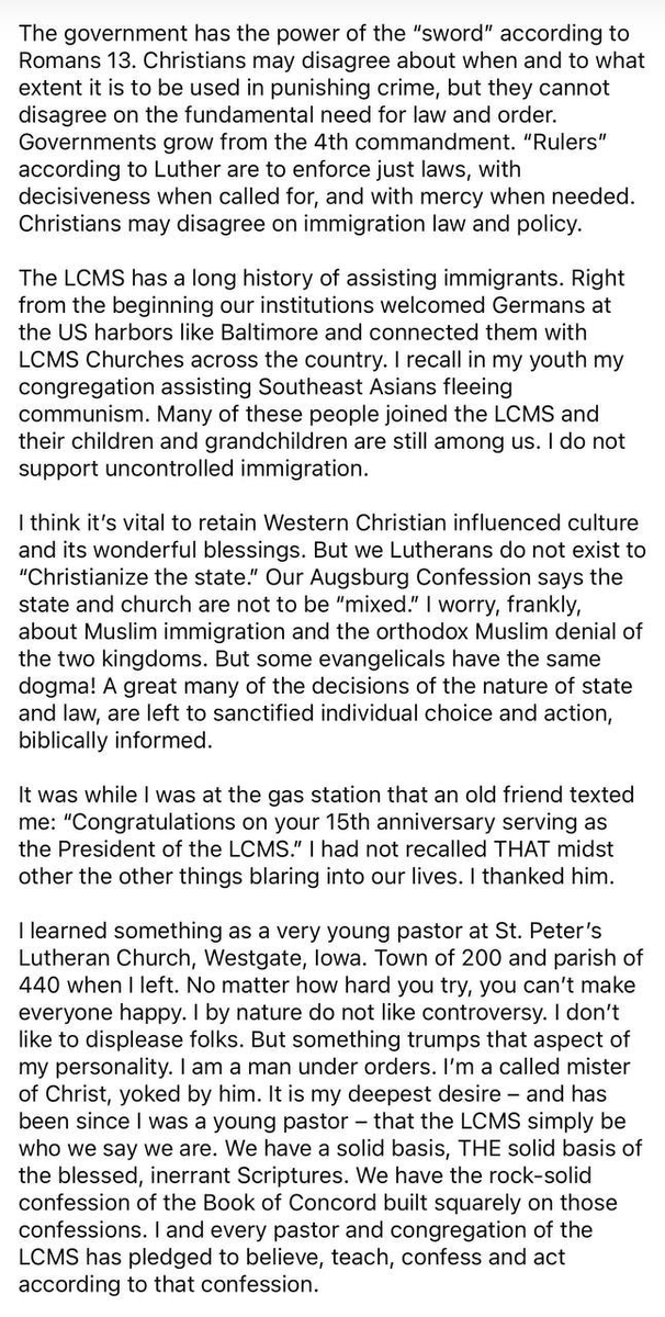 A week later, the LCMS released rather thorough guidelines on how to handle immigration law enforcement should an officer visit a church.