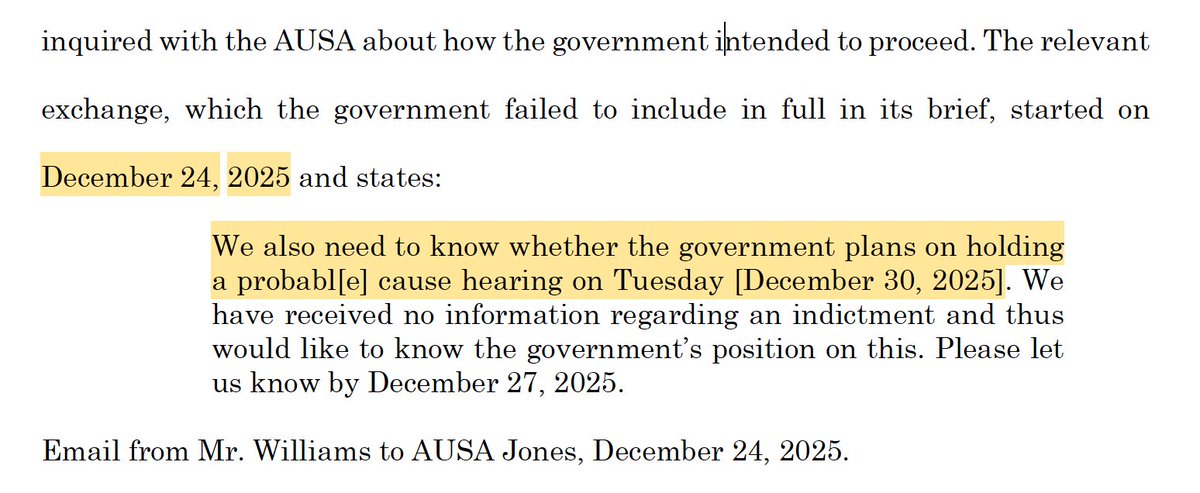 On 12/28 Govt told Cole’s attys that the 12/30 hearing was *not* a preliminary hearing but that no federal grand juries were sitting from 12/16 to 1/5. Cole’s attys said they hadn’t waived the indictment/prelim hearing deadline beyond 12/30. ...
