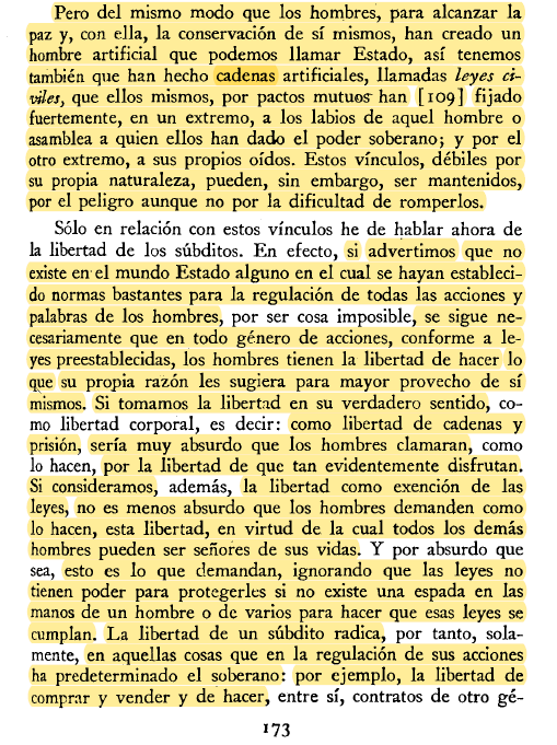 Hobbes: "las leyes civiles son cadenas artificiales".