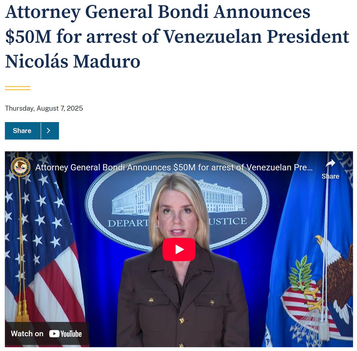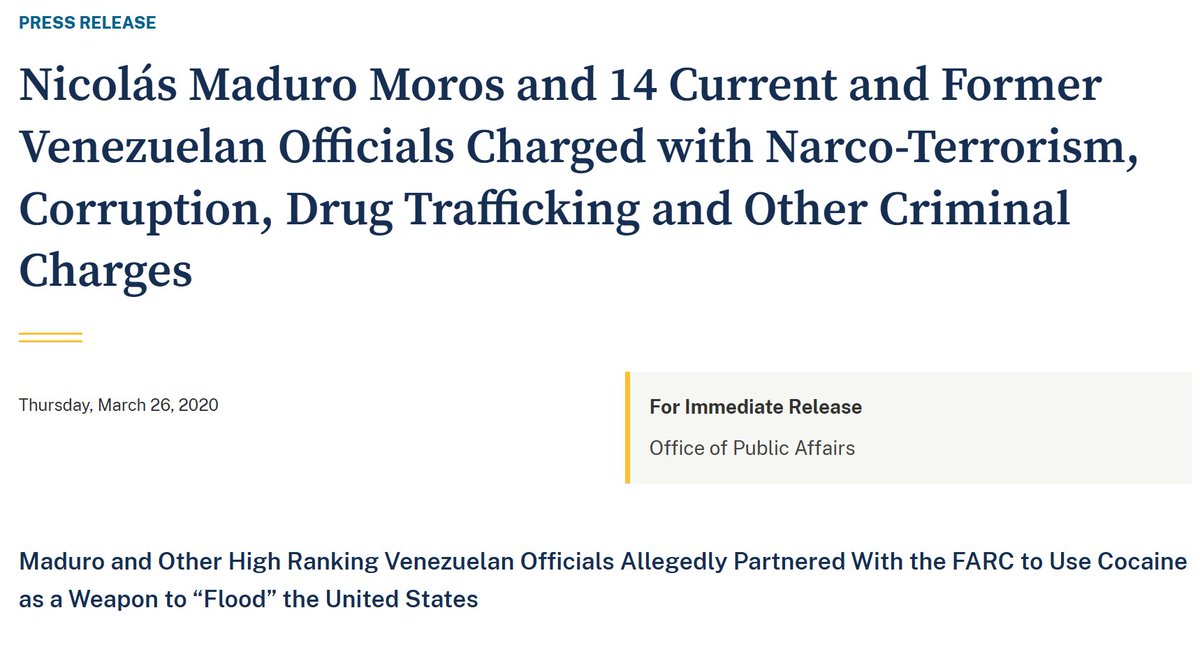 That same year, 2019, the US announced charges against two Columbians who worked closely with Maduro's Regime and had engaged in a $350mil birbery and money laundering scheme.