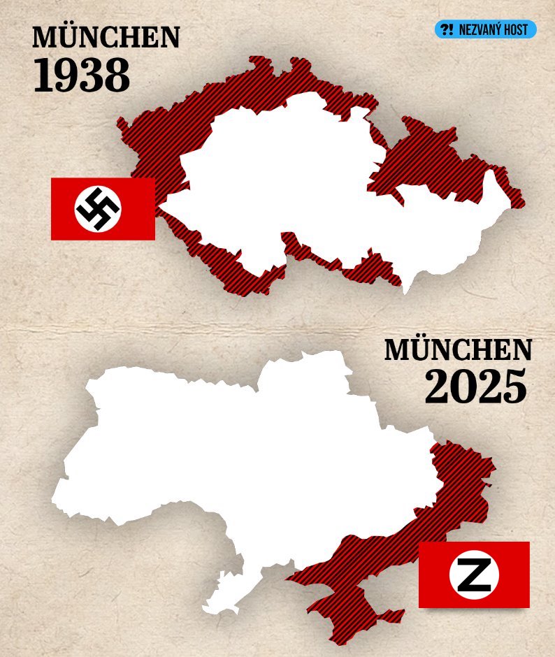 Velmi dobře také víme, jaké to je být zrazen Západem a jak nebezpečné je dát území agresorovi „pro mír“. Po hrůze nacistické okupace následovaly zločiny Rudé armády. Část země osvobodili partyzáni a Američané, ale Stalin si připsal celou zásluhu.