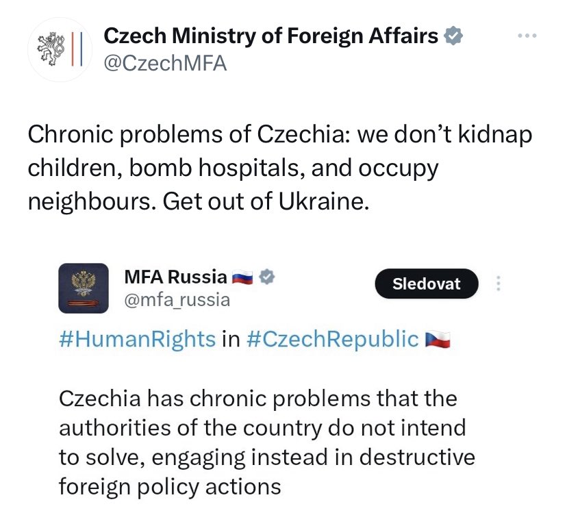 České ministerstvo zahraničí otevřeně kritizuje to ruské. Občanské iniciativy jako Dárek pro Putina @DarPutinovi vybraly desítky milionů eur na obrannou vojenskou techniku pro Ukrajinu.