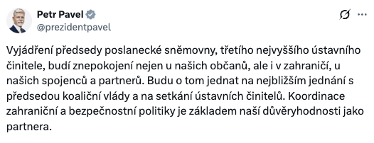 V prosinci jeho strana vytvořila novou vládu s Andrejem Babišem. SPD získala ministerstvo obrany s Jaromírem Zůnou. Jeho první vyjádření byla proukrajinská… dokud ho Okamurovci neumlčeli.