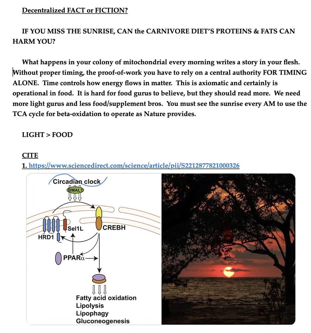 Red light in the sun preconditions your skin for the coming UV light in the day and that light contains the information your mitochondrial matrix requires to operate.
