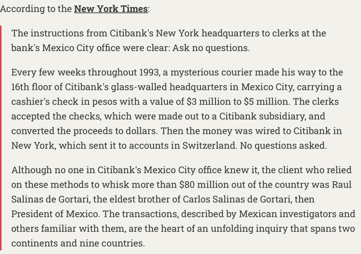 Does it surprise anybody that one of the most corrupt banks in the world would be laundering money for the brother of the president of Mexico?
