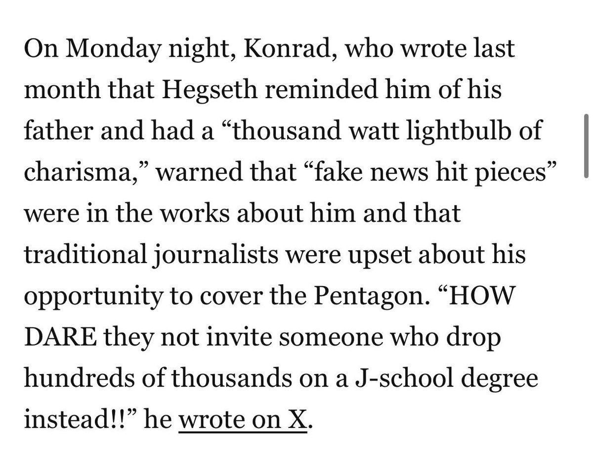 It was a coordinated hit by the old Pentagon press corps to kneecap @PeteHegseth and to punish anyone they don’t control.