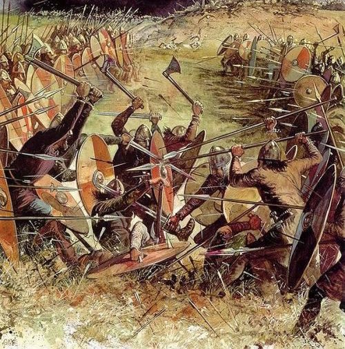 The Vikings divided their army into two contingents. One was led by kings Bagsecg and Halfdan, and the other was led by the Vikings earls.