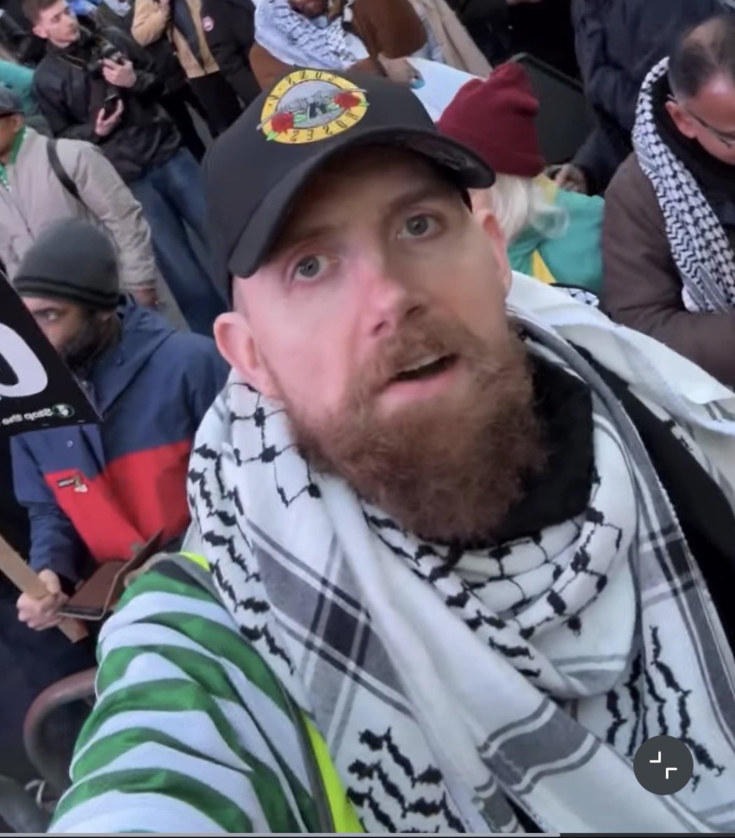 Last year, he was charged under the Terrorism Act and still openly shows support on his profile for the proscribed group Palestine Action.