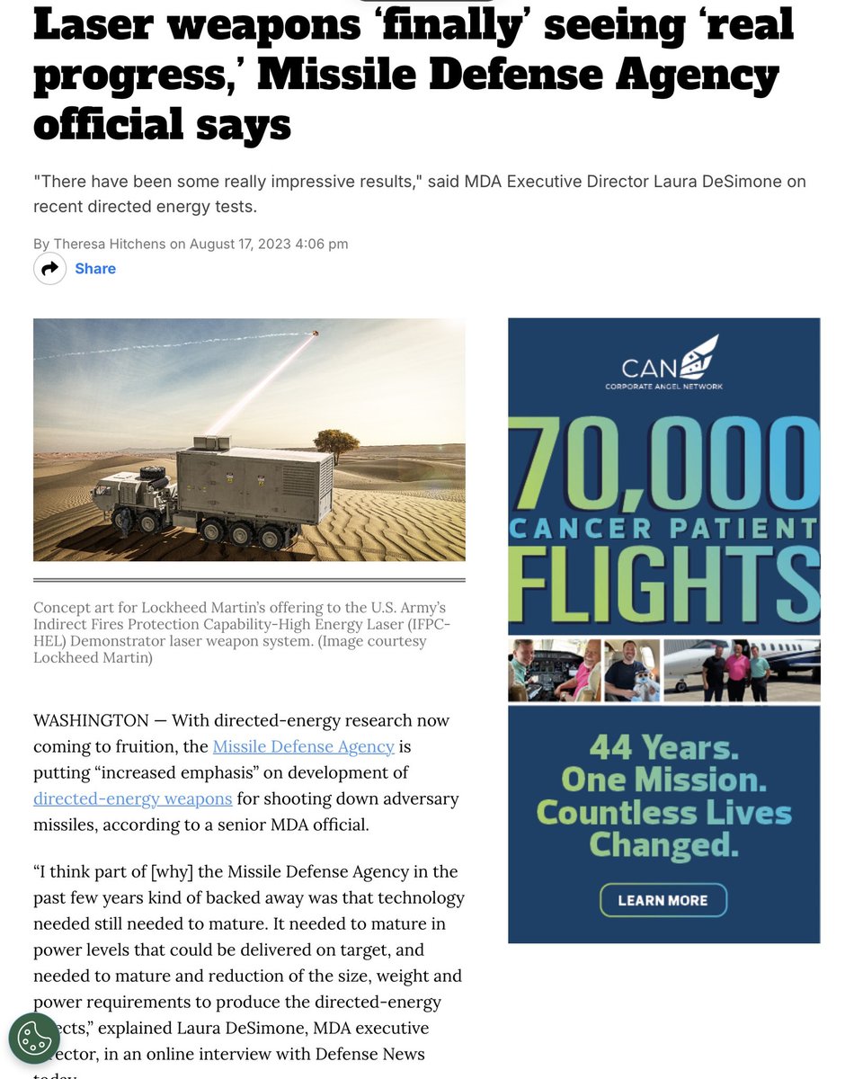 “With directed-energy research now coming to fruition, the Missile Defense Agency is putting “increased emphasis” on development of directed-energy weapons…”