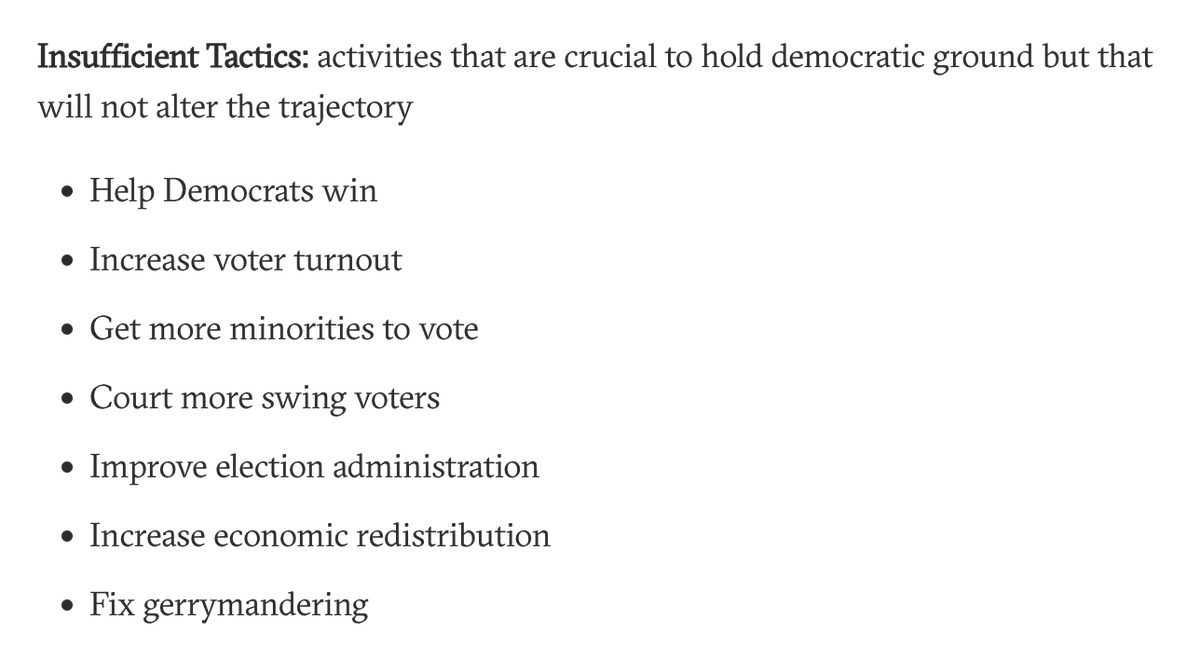 (That a NED scholar lists "electing Democrats" as an implicit tactic to preserve democracy should signal to any Republican how unserious they are being when they support NED.) Image