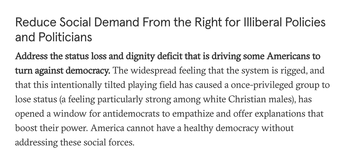 Second tactic: they think that populism is being driven by grievances, so let's install "dignity" back into them.