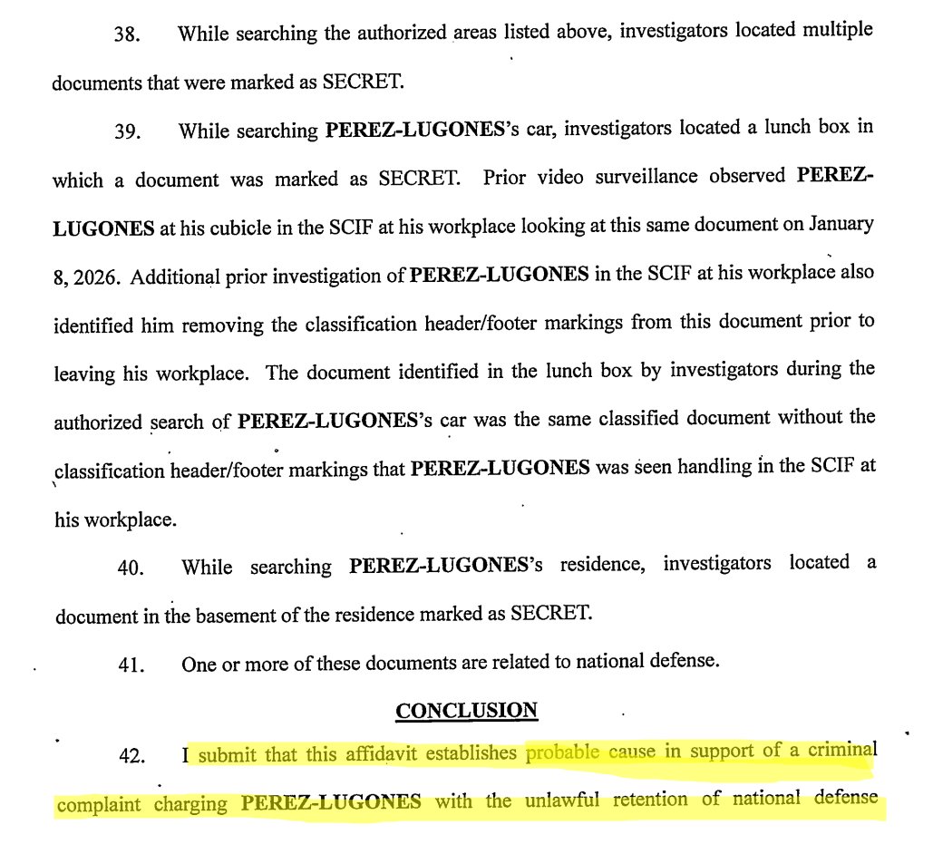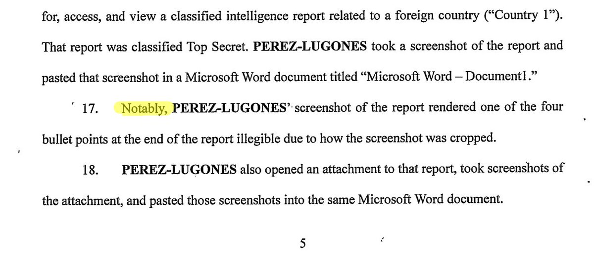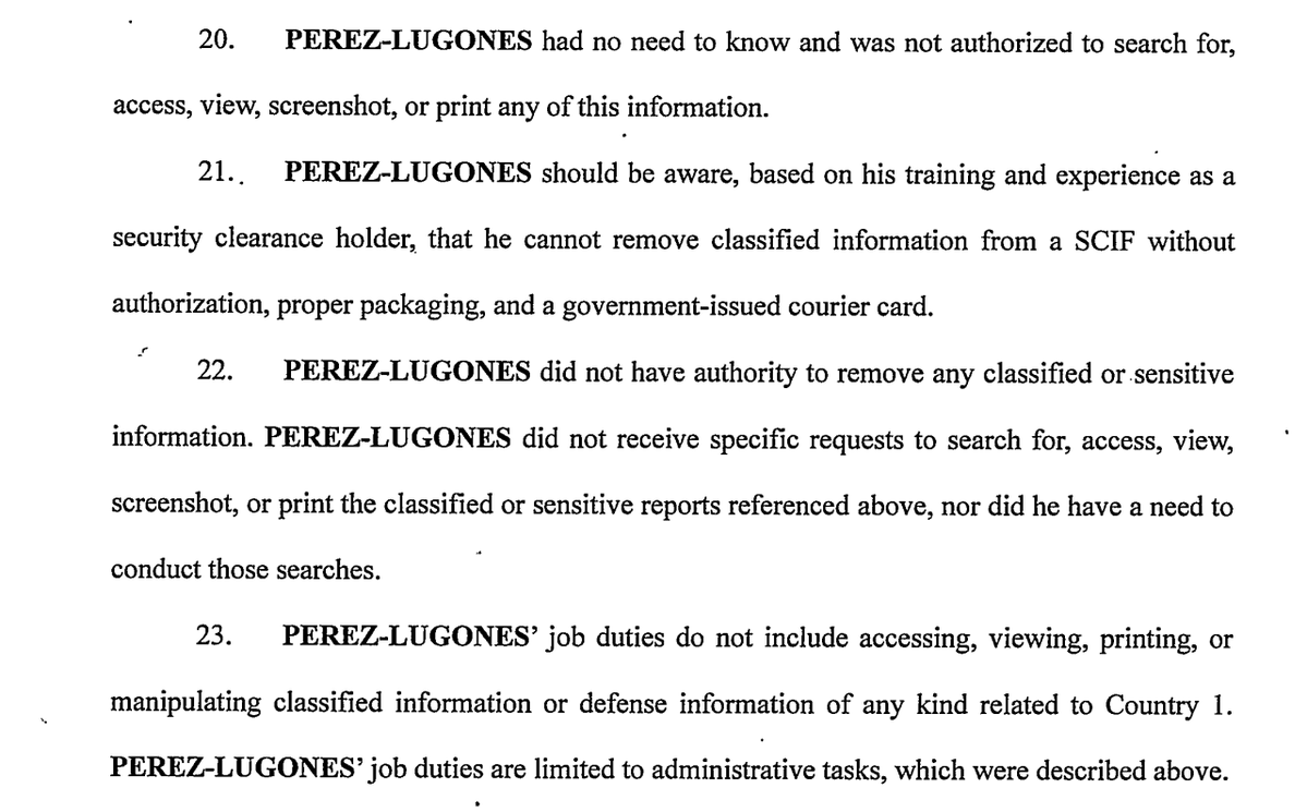 But... if investigators find evidence that she encouraged, requested, or otherwise was involved in Perez-Lugones fetching the national defense information that he is at this time charged with retaining... the focus may evolve.