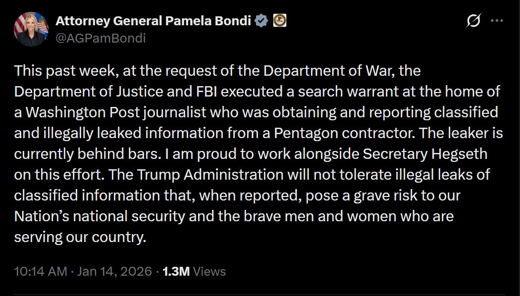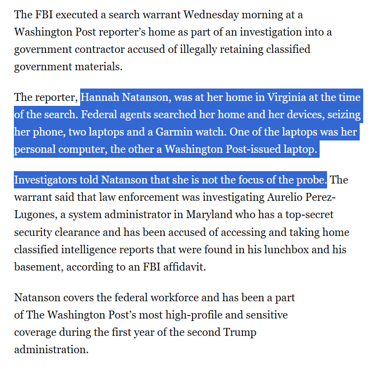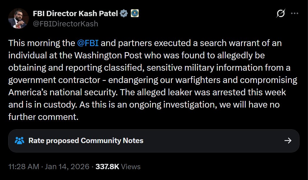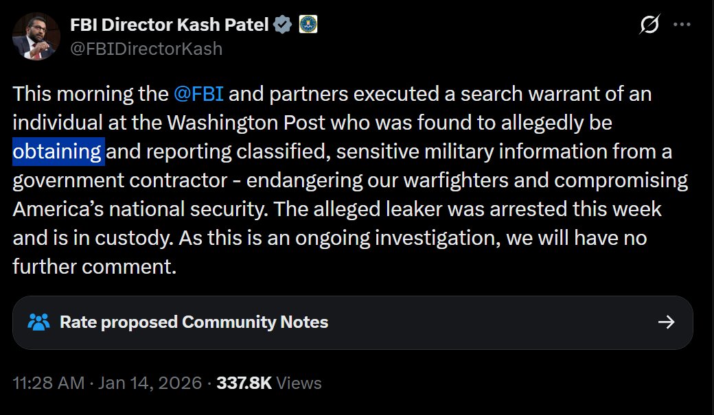 Arrest of Defense Contractor Leads to Search of WaPo Journalist's Home and Seizure of Devices