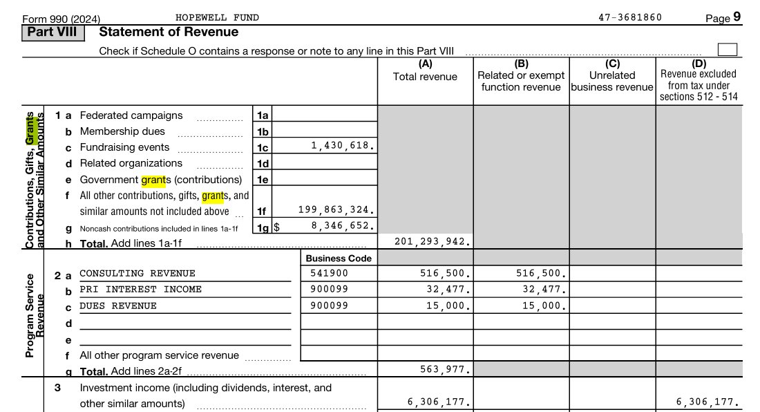 The Hopewell Fund, in 2024, received a 200 million dollar grant.