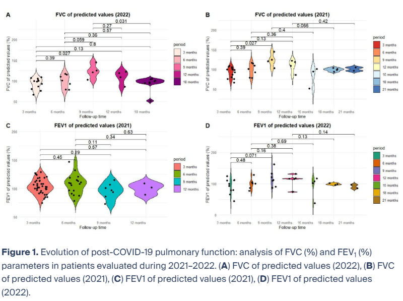 ➡️Romanian single-center study longitudinally( ~22 months) assessing pulmonary function tests (PFTs) in adults with post-COVID-19 syndrome (PCS/LC), excluding prior lung disease(n=97 PCS patients, 2021–2022).