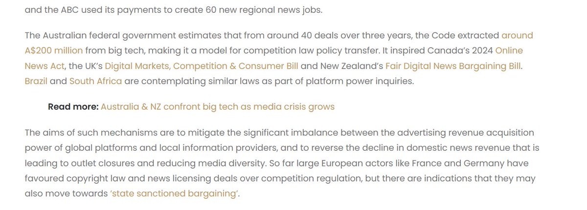 Canada provides several privileges for officially-recognized media organizations, such as tax refunds up to 35% of labor costs and huge transfers directly from platforms where their content is posted. Australia, UK, South Africa, Brazil, and NZ have similar programs.