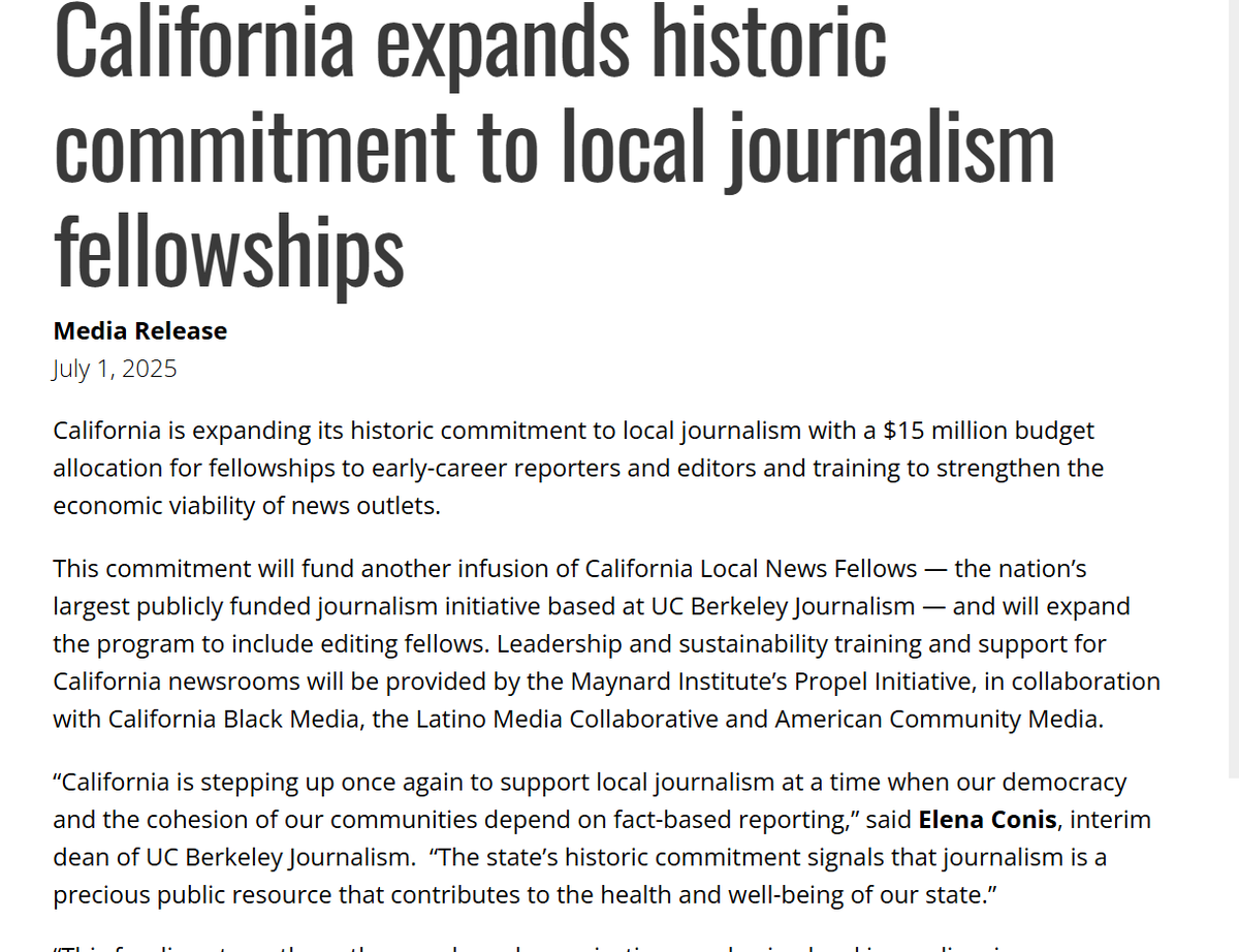 Unsurprisingly (it is basically the UK with good weather and Silicon Valley), California is going down a similar route of state-subsidized media.