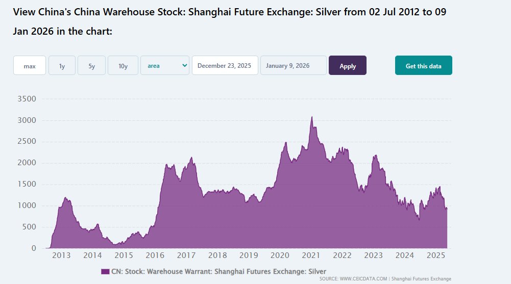Shanghai Futures Exchange (SHFE) silver stocks are PHYSICAL METAL — and they are being DRAINED.