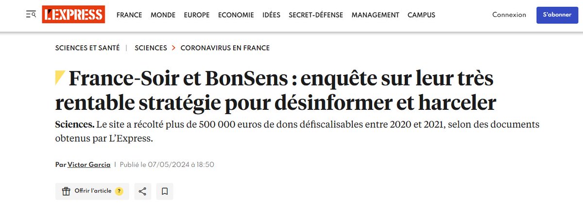 @DgCostagliola @hervemaison @MathieuMolimard @stephanie_rist 8/ Exemple dans les jours qui ont suivi l'article de #FranceSoirFaitDeLaMerde appelant à la décapitation de médecins et scientifiques nommément cités dont moi, leur collecte de dons a explosé par centaines de milliers d'€. Et la justice trouve ça cool.🔽
