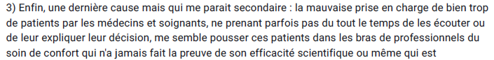 @DgCostagliola @hervemaison @MathieuMolimard @stephanie_rist @ordre_medecins @Elysee 12/ Comme cause secondaire de la désinformation en santé, j'ai indiqué que la maltraitance ou mauvaise prise en charge par trop de médecins et soignants, qui poussent des patients dans les bras de charlatans.