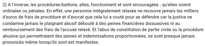 Car la loi et la justice française ont ceci de beau que même si vous êtes relaxé le plaignant débouté n'a pas à vous rembourser vos frais de défense.