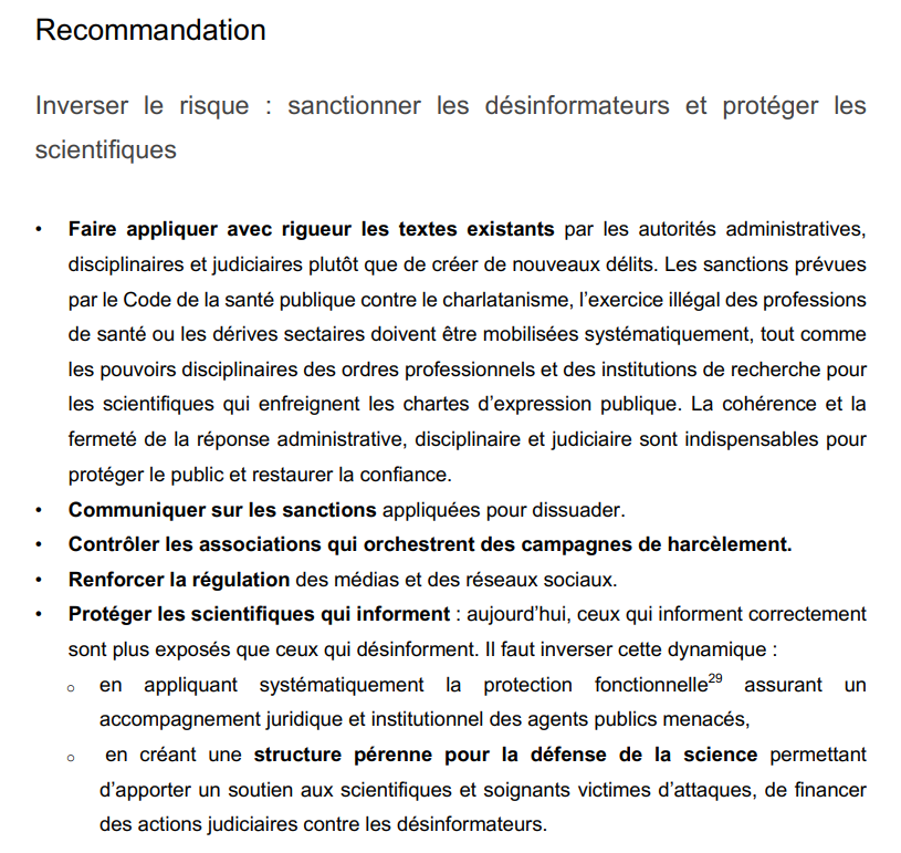 Bon, voyons voir les propositions du rapport final de la mission ministérielle sur la désinformation en santé.