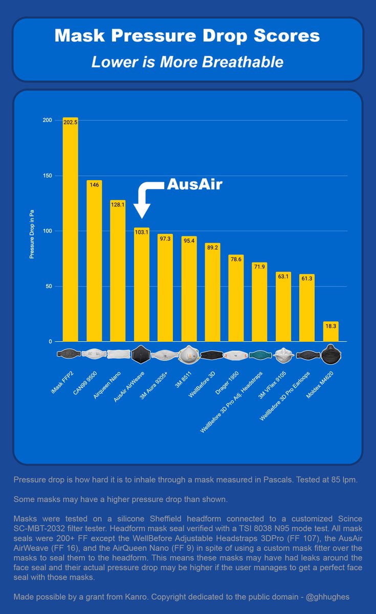 Note that this line up of masks, other than the iMask, is a bit skewed. They represent a number of the more breathable masks on the market. Most respirator grade masks aren't under 100Pa.