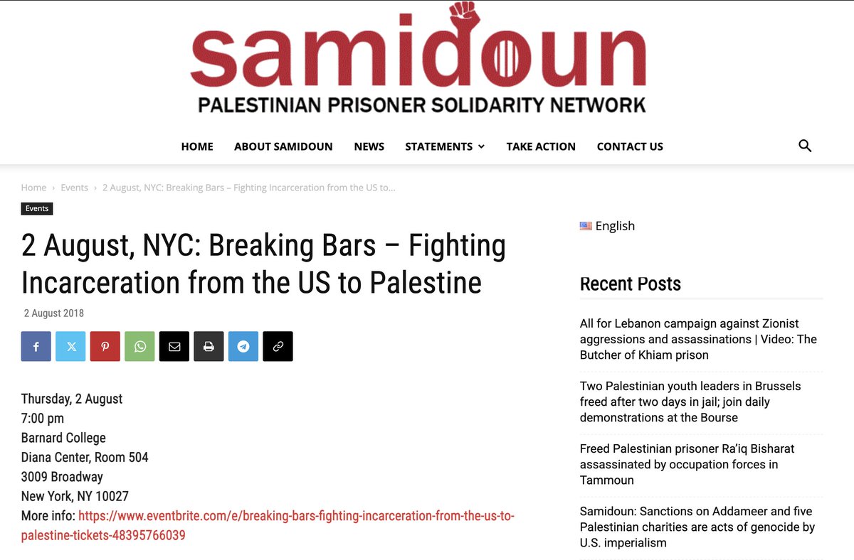 The event was advertised by Samidoun, which was designated a sham charity for the PFLP in October. Members of Samidoun participated in the March 2024 Resistance 101 event at @Columbia, including Specially Designated terrorist Khaled Barakat, who talked about his friends in Hamas.