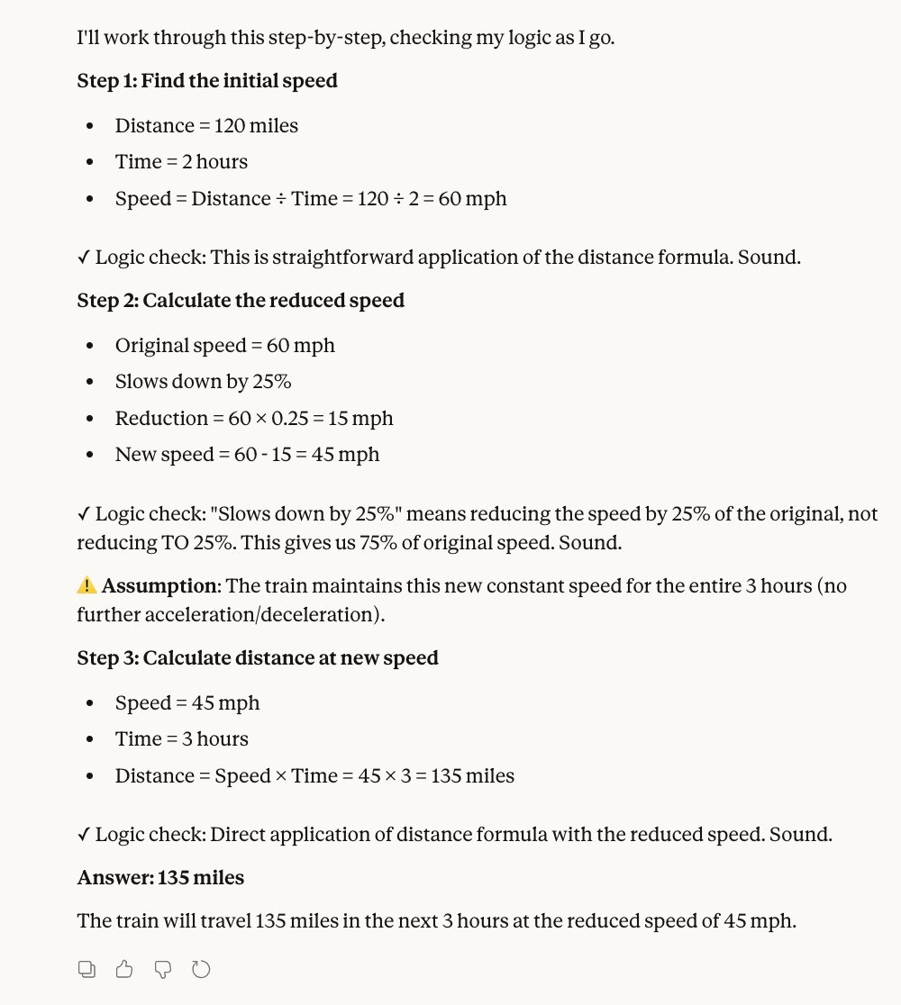 Don't just ask for reasoning. Ask the AI to check its own logic at each step.