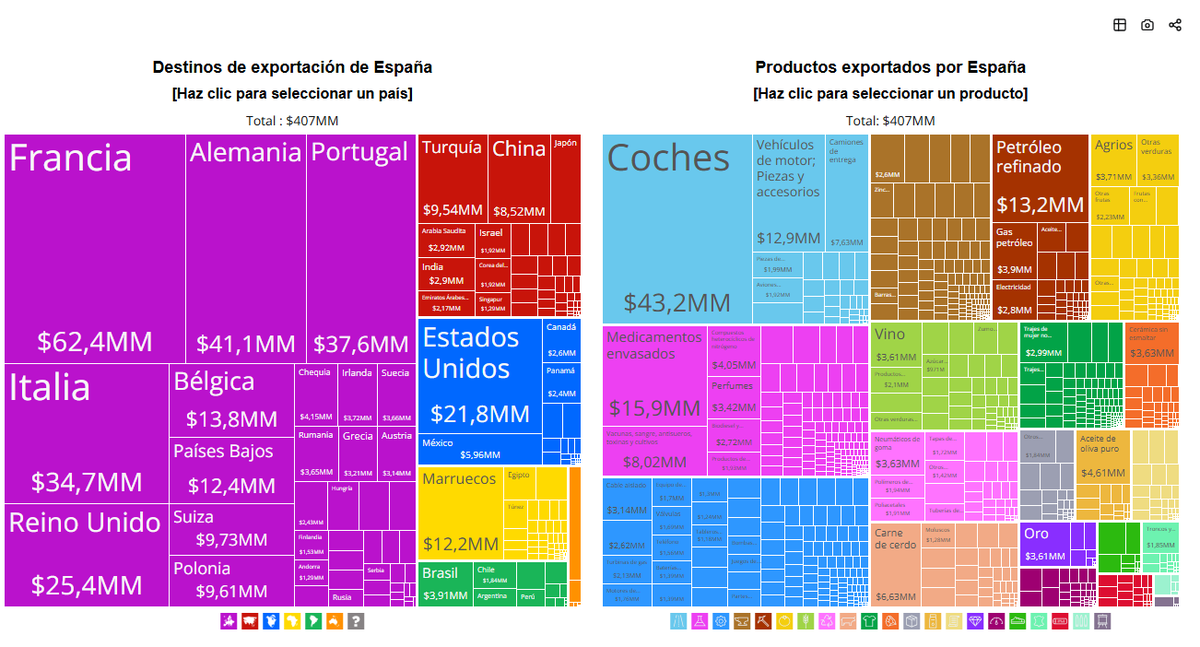 En el caso de España, tal y como podréis ver en los siguientes gráficos, con maquinaria industrial –medios de producción–, vehículos de motor, fármacos y componentes electrónicos complejos.