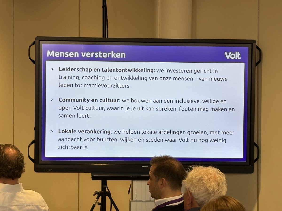 Er was al een plan, zegt andere bestuurder. Zegt daarna dat Volt heel erg bottom-up werkt. Hij is wel blij met het signaal. Nu zegt Sophie in 't Veld dat deze discussie bij 'die andere partij' ook gevoerd werd. Daar zou je van kunnen leren want die heeft nu succes.