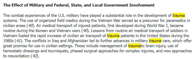 -Adoption of military Korea/Vietnam medical emergency treatment & air transport procedures,