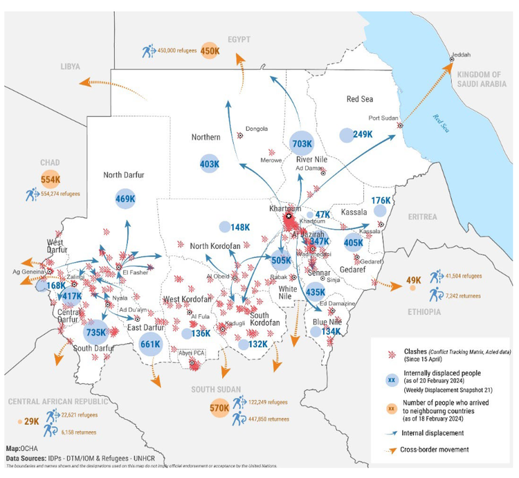 -> 4 million left the country (to Chad, Egypt, South Sudan mainly)